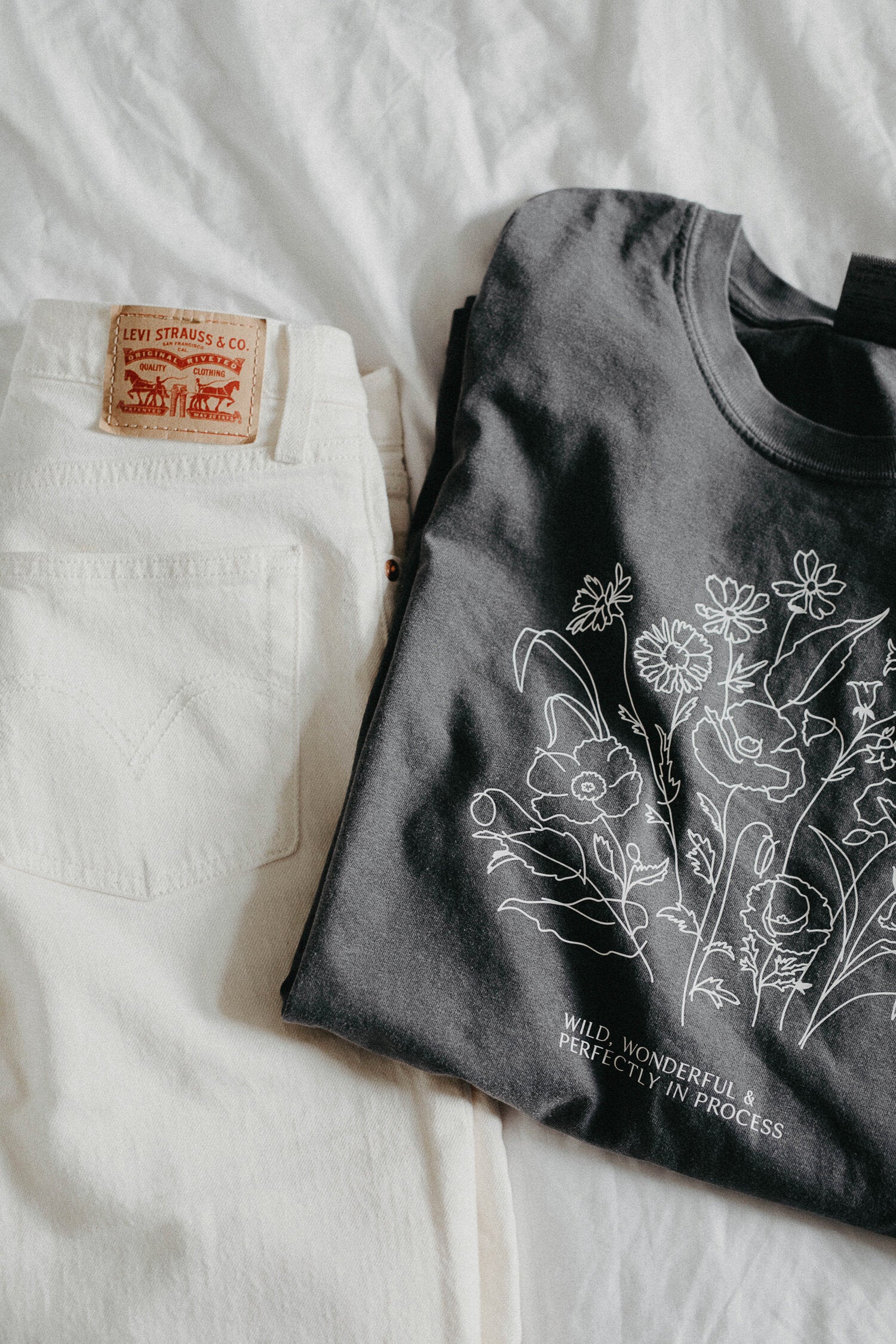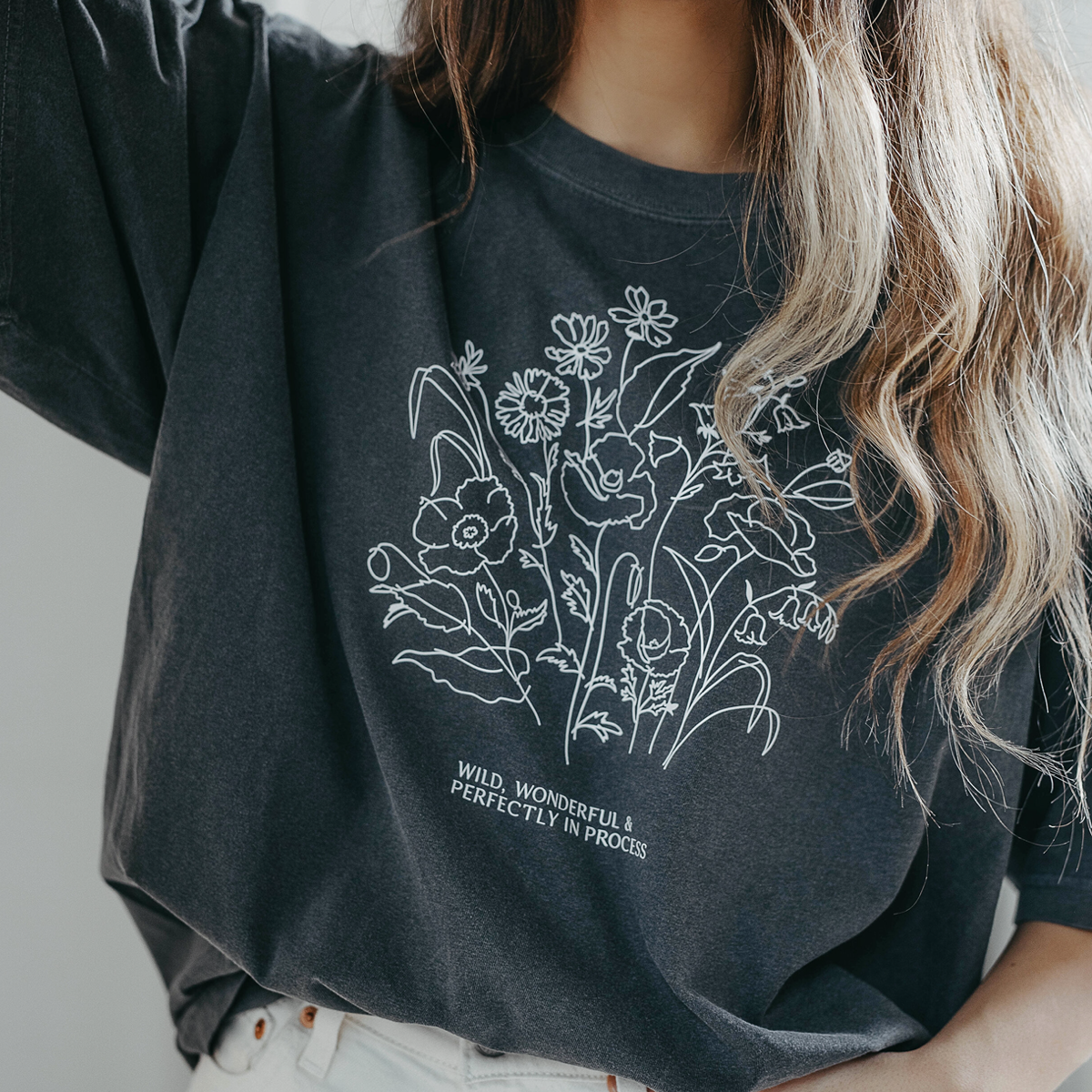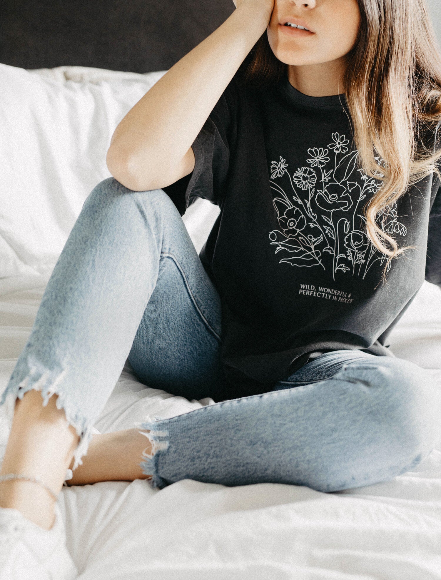 an oversized vintage washed-out tee to remind you of the wildflower message: you are wild, wonderful and perfectly in process.